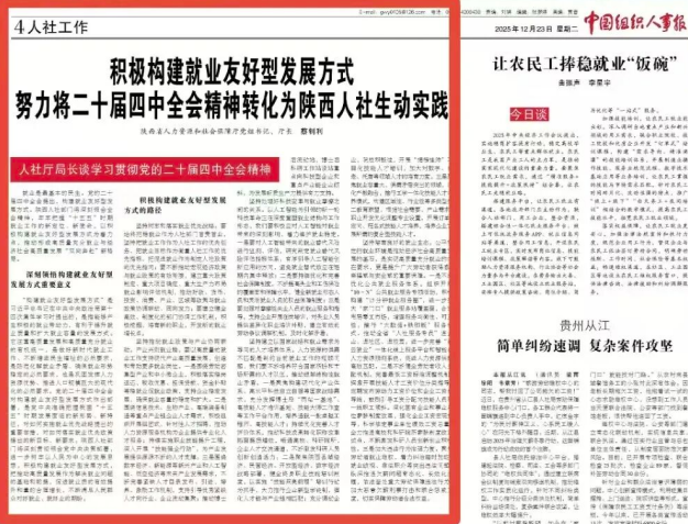 中国组织人事报刊发蔡钊利厅长署名文章《积极构建就业友好型发展方式努力将二十届四中全会精神转化为陕西人社生动实践》