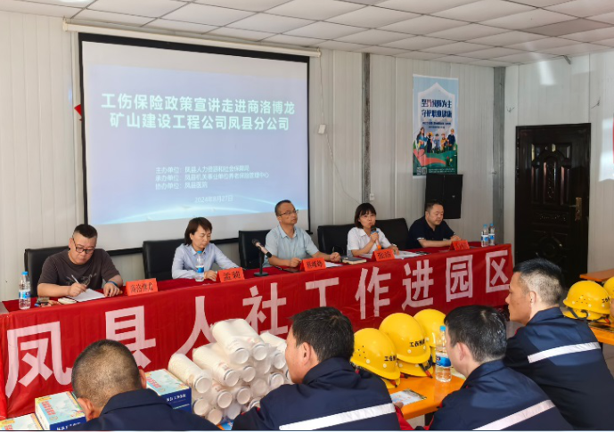 为进一步将“人社工作进园区”工作走深走实,8月27日,由宝鸡市凤县人社局主办,县机关养老保险中心承办的工伤保险政策入企宣讲活动走进凤县留凤关镇三岔村博龙矿山工程公司,通过上好工伤预防动员课、业务政策培